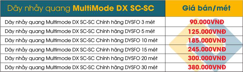 Do đặc tính về sợi tín hiệu truyền dẫn mà dây nhảy quang Multimode SC - SC cũng như các loại dây nhảy quang Multimode chất lượng khác đều có giá thành cao hơn dây nhảy quang Singlemode một chút.