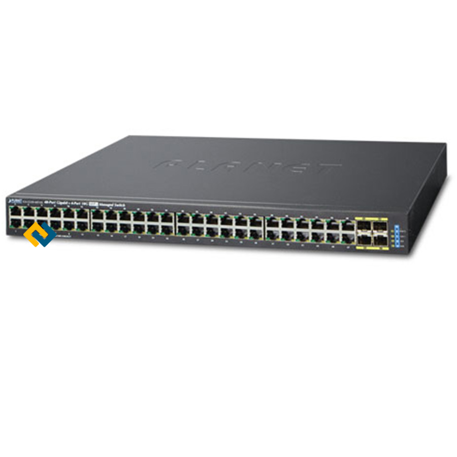 PLANET GS-5220-48T4X là Switch Gigabit Cấp 2 được quản lý với tính năng 48-Port 10/100 / 1000Mbps + chia sẻ 4 cổng SFP + 4 cổng 10G SFP + và hỗ trợ định tuyến tĩnh 3 trong trường hợp 1U. Với đường lên 10Gbps, GS-5220-48X4T có thể xử lý rất nhiều lượng dữ liệu trong mô hình liên kết an toàn liên kết với một doanh nghiệp xương sống hoặc máy chủ công suất cao. Mỗi khe SFP + hỗ trợ Dual-Speed, 10GBase-SR / LR hoặc 1000Base-SX / LX, có nghĩa là quản trị viên bây giờ có thể chọn linh kiện phù hợp với SFP / SFP + theo khoảng cách truyền hoặc tốc độ truyền cần thiết để mở rộng mạng hiệu quả.