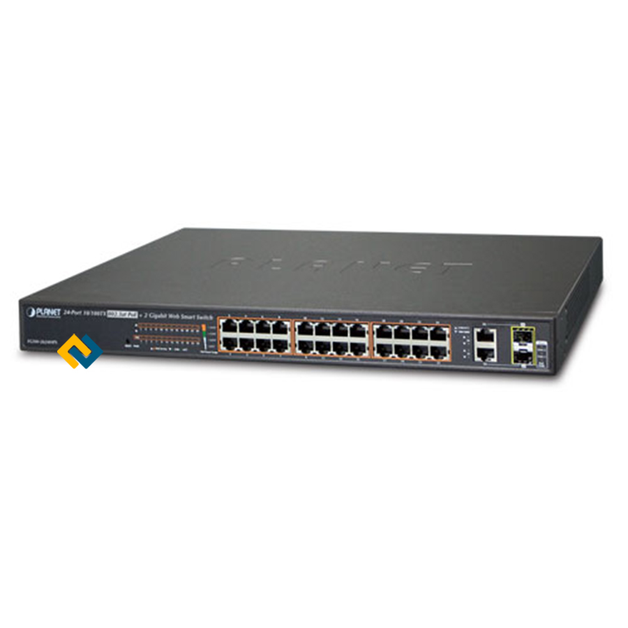 Switch Planet FGSW-2624HP 802.3at PoE chuyển đổi web là một công cụ chuyển mạch giám sát với quản lý trung tâm điều khiển điện từ xa và giám sát camera IP. FGSW-2624HPS / FGSW-2624HPS4 cung cấp các chức năng PoE cùng với 24 cổng 10 / 100BASE-TX với PoE 802.3at 30 wat với giao diện đồng RJ45 và 2 giao diện kết hợp Gigabit TP / SFP hỗ trợ tốc độ truyền hình ảnh và video giám sát cao. Với tổng công suất 220 W và 420 W cho các ứng dụng PoE khác nhau,